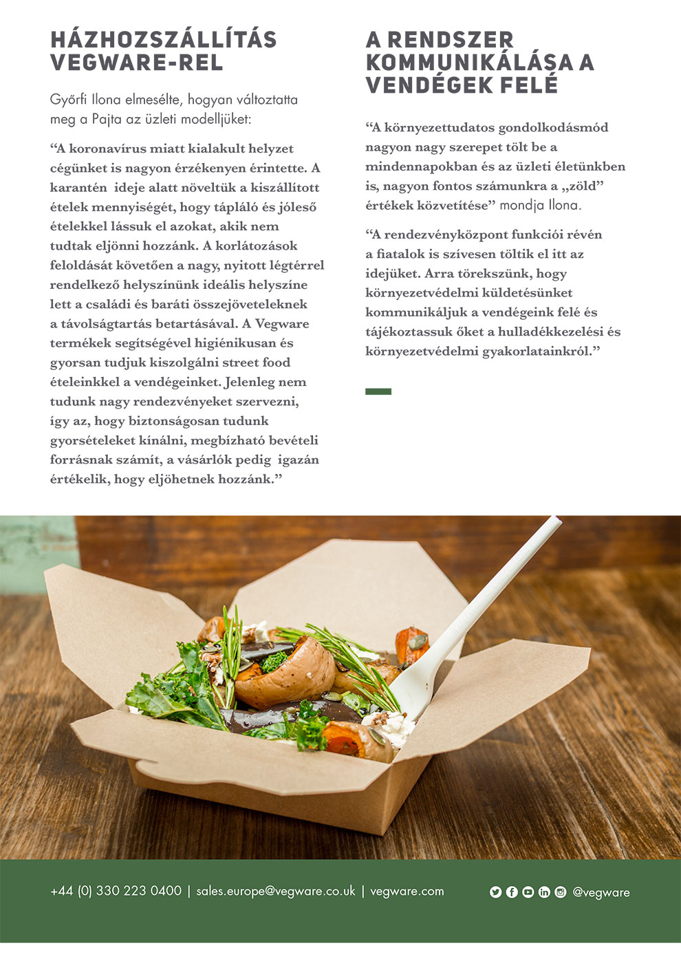 A termékek funkcionalitása, praktikussága és minősége miatt váltottak a Vegware egyszer használatos termékeire. A fenntartható, komposztálható csomagolás összhangban van a környezetbarát szemléletmódjukkal.